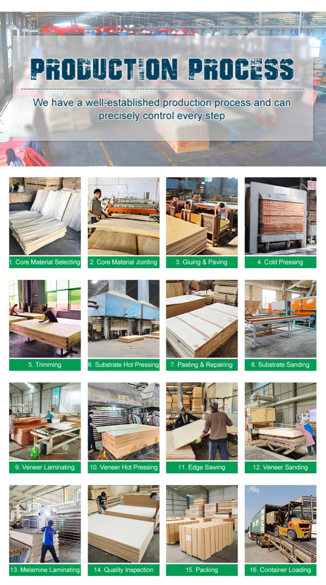 | Glue Type | E0, E1, E2 (Eco-Friendly Grade) |